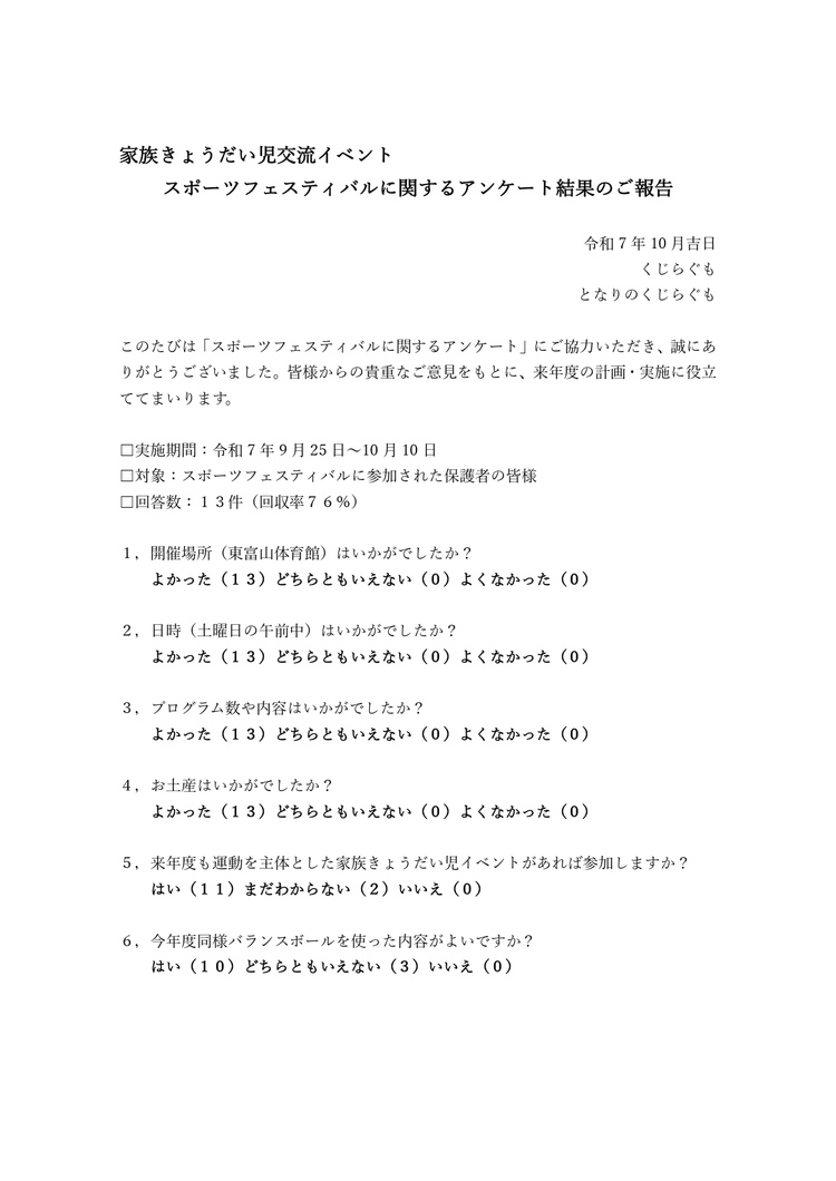 3. 家族きょうだい児交流イベント スポーツフェスティバルに関するアンケート結果