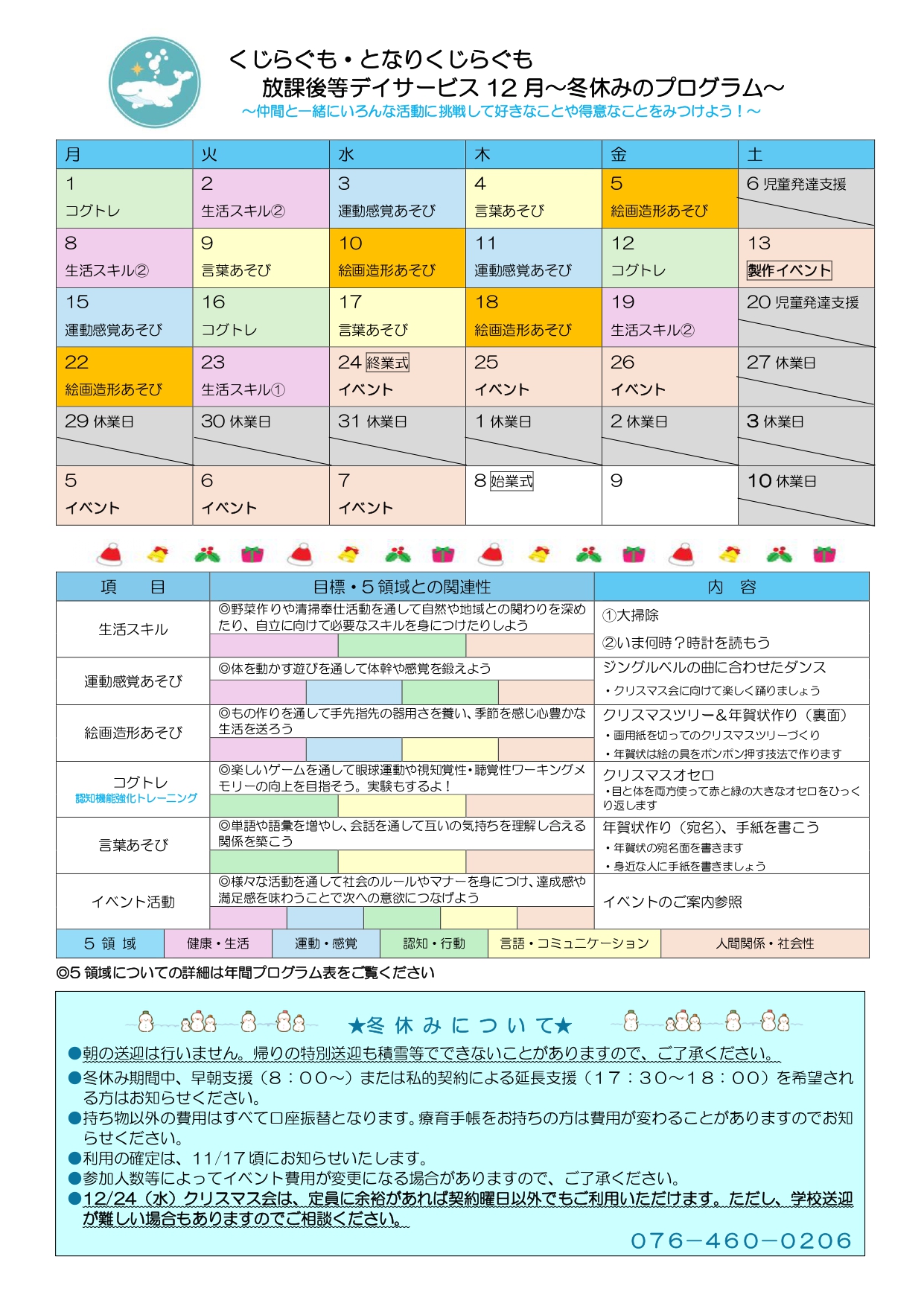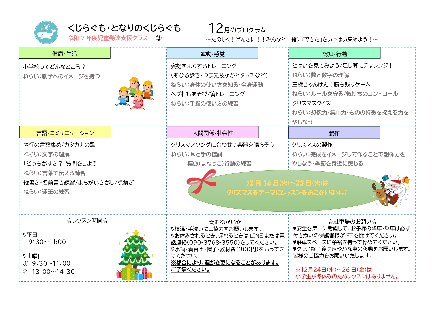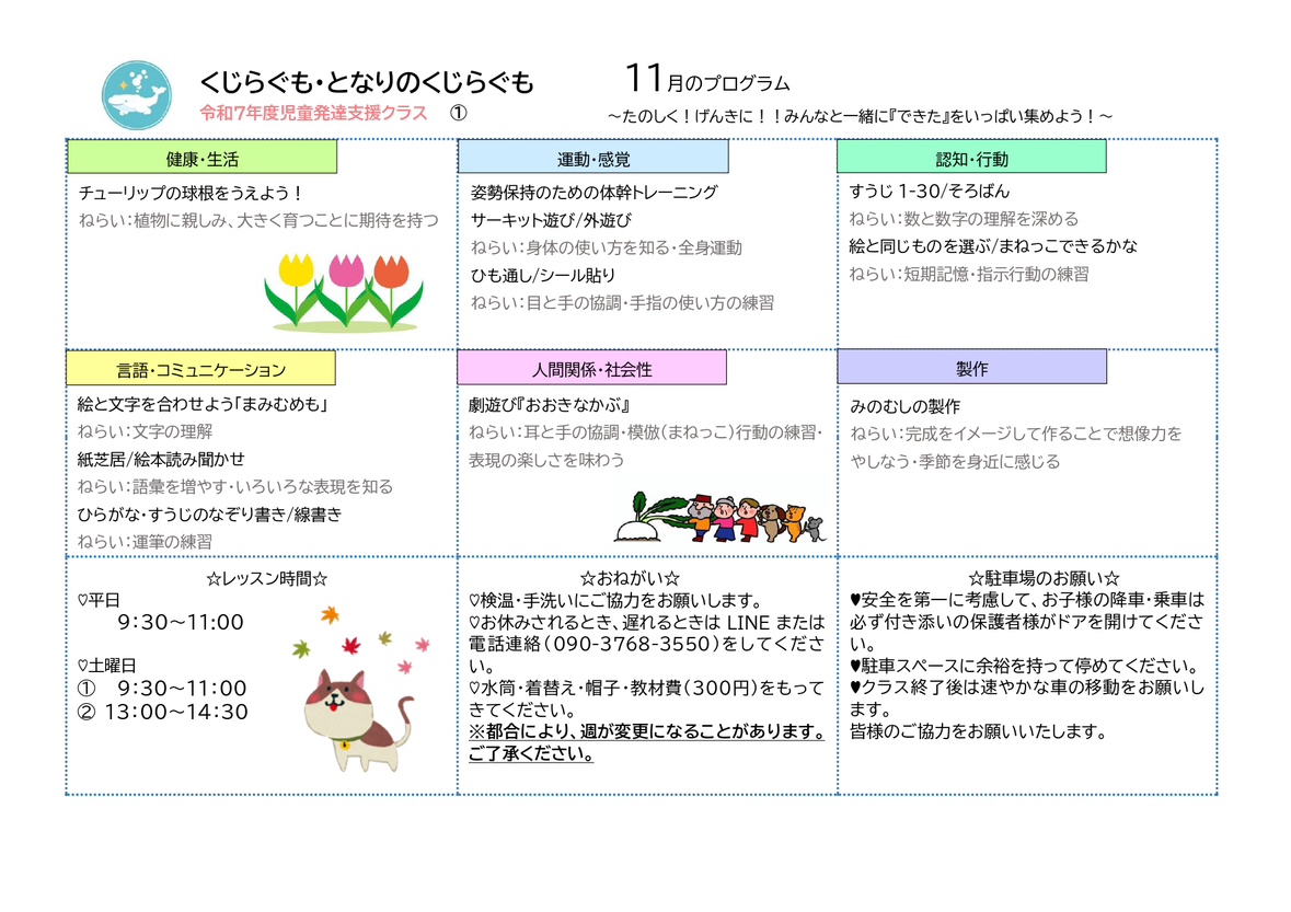 ○児童発達支援【くじらぐも・となりのくじらぐも】①○児童発達支援【くじらぐも・となりのくじらぐも】②○児童発達支援【くじらぐも・となりのくじらぐも】③○放課後等デイサービス【くじらぐも】○放課後等デイサービス【となりのくじらぐも】