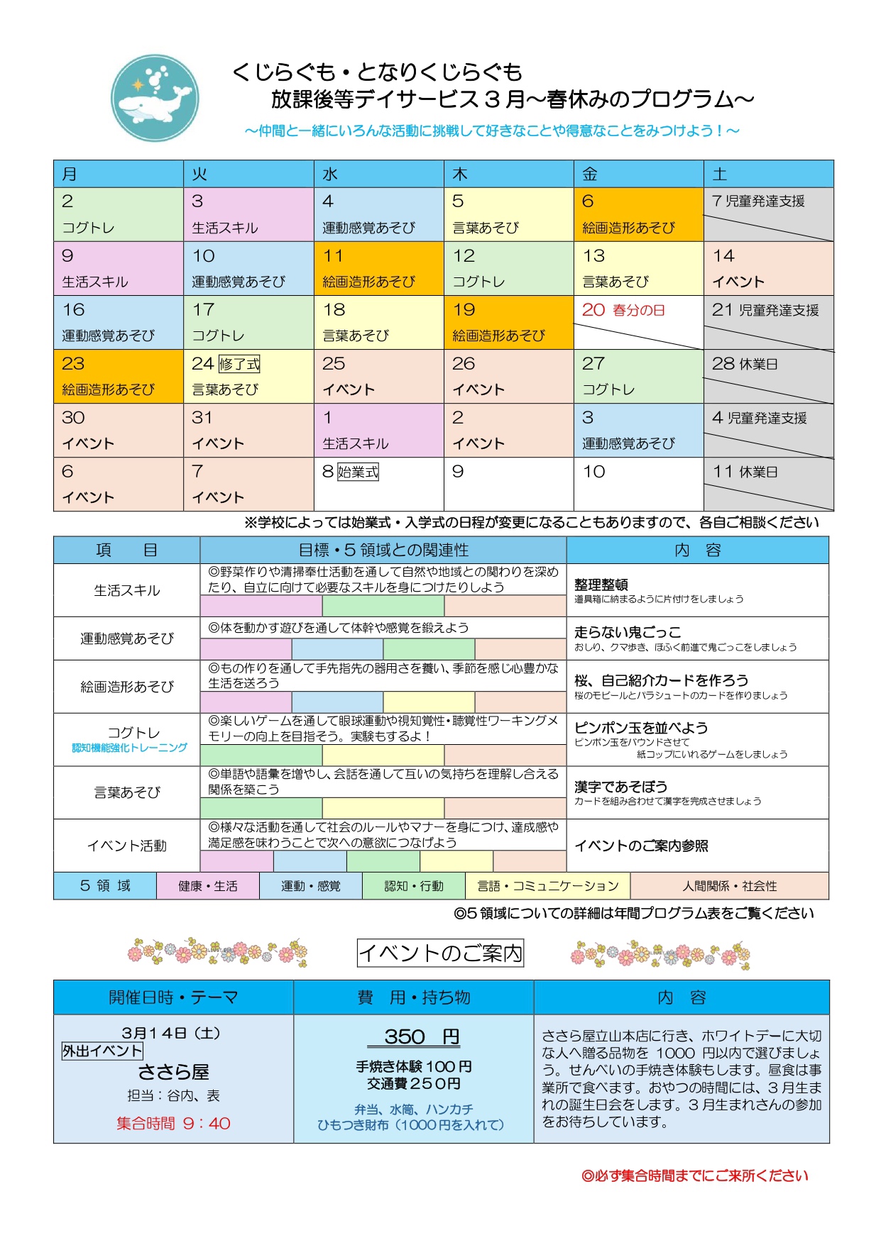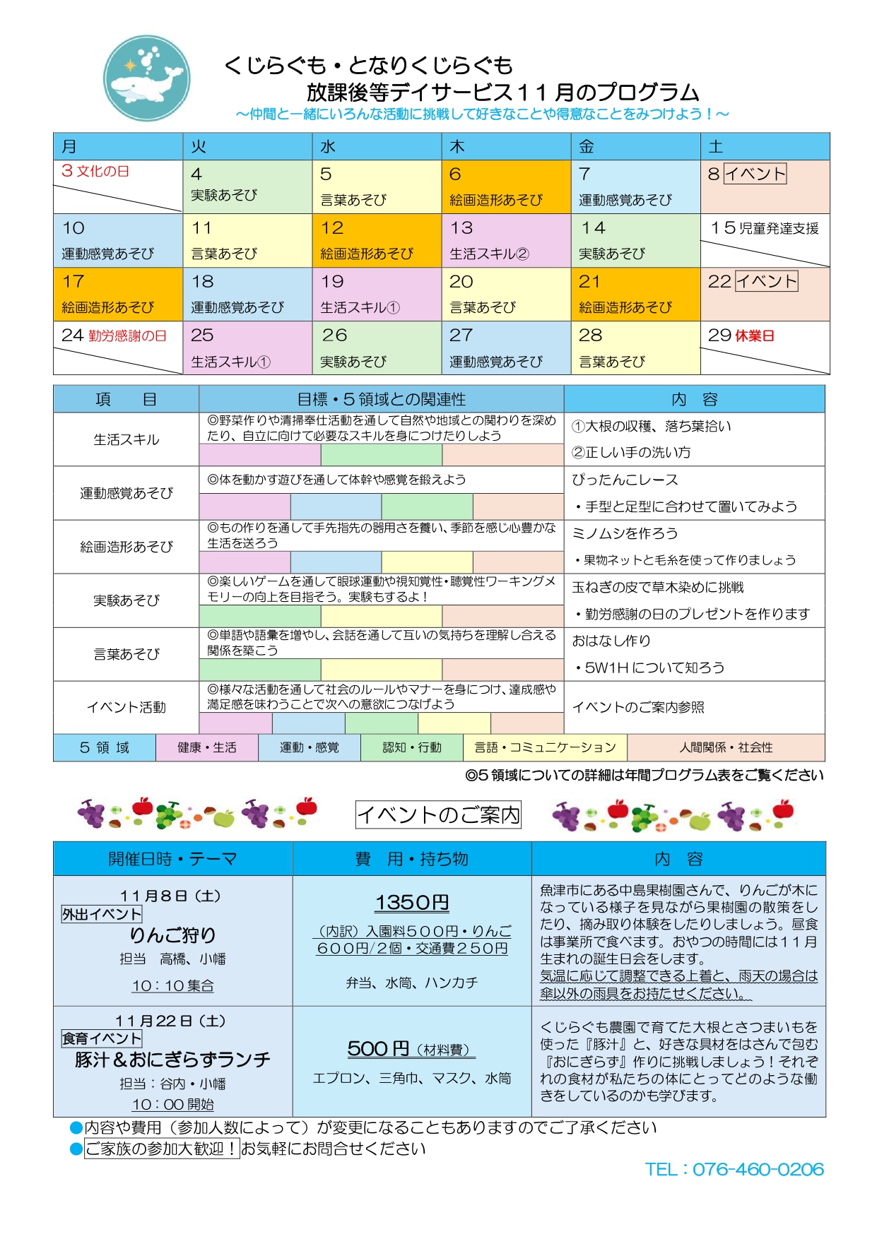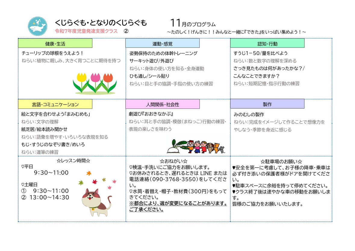 ○児童発達支援【くじらぐも・となりのくじらぐも】①○児童発達支援【くじらぐも・となりのくじらぐも】②○児童発達支援【くじらぐも・となりのくじらぐも】③○放課後等デイサービス【くじらぐも】○放課後等デイサービス【となりのくじらぐも】