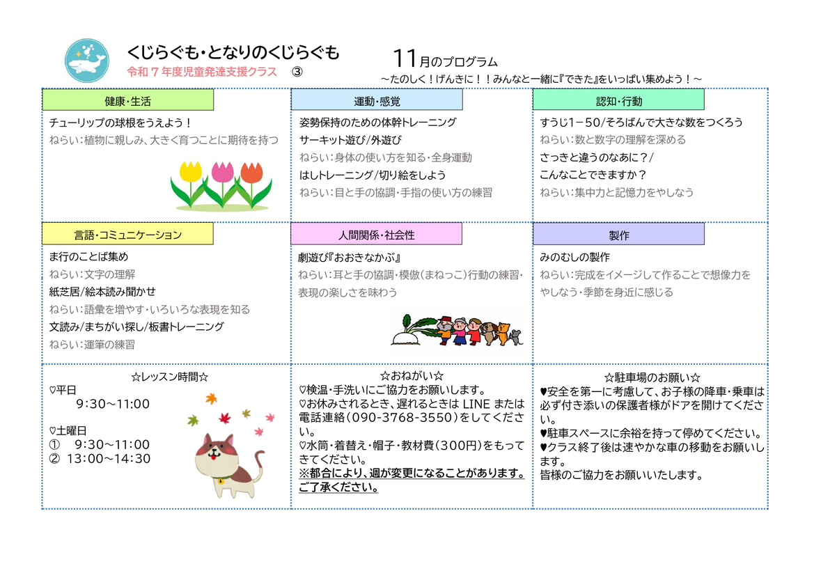 ○児童発達支援【くじらぐも・となりのくじらぐも】①○児童発達支援【くじらぐも・となりのくじらぐも】②○児童発達支援【くじらぐも・となりのくじらぐも】③○放課後等デイサービス【くじらぐも】【となりのくじらぐも】