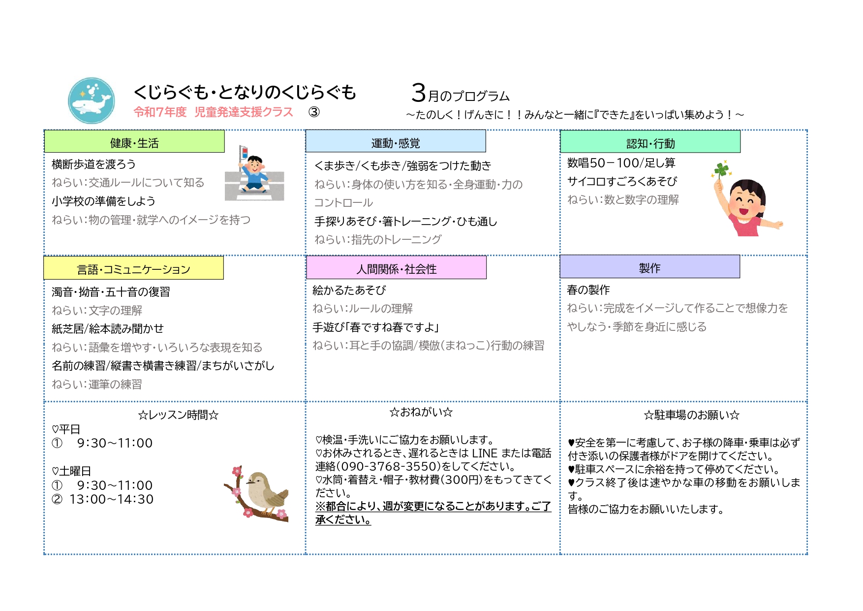 ○児童発達支援【くじらぐも・となりのくじらぐも】①②○児童発達支援【くじらぐも・となりのくじらぐも】③○放課後等デイサービス【くじらぐも】【となりのくじらぐも】